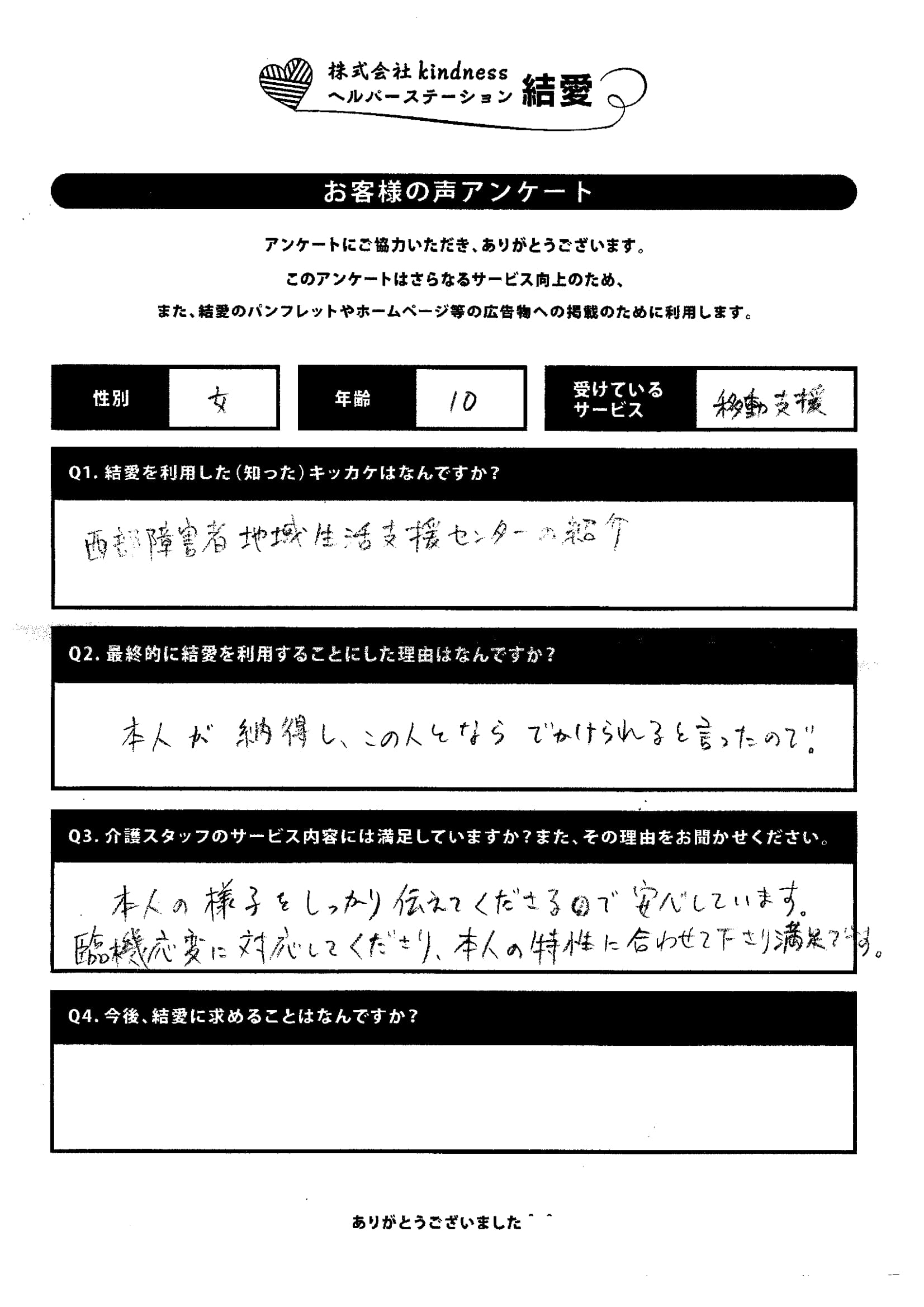 サービスを受けられたお客様の声です。よりよいサービスを提供するために、様々なご意見を頂戴し、日々改善に努めております。