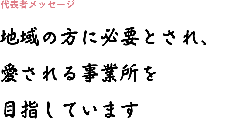 私たちは福祉サービスを通じて、地域の方に必要とされ、愛される事業所を目指しています。