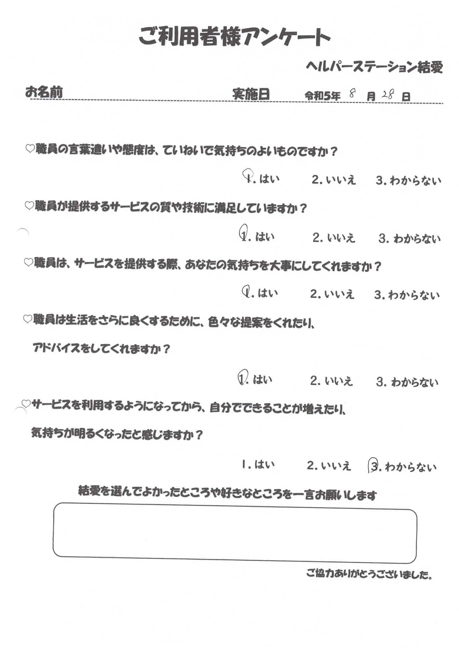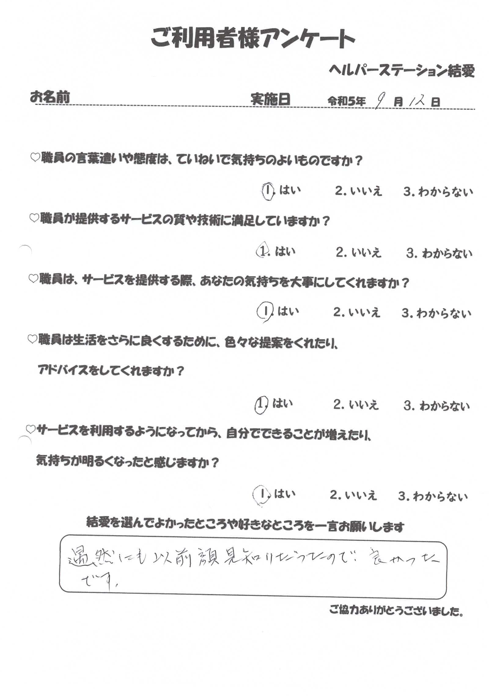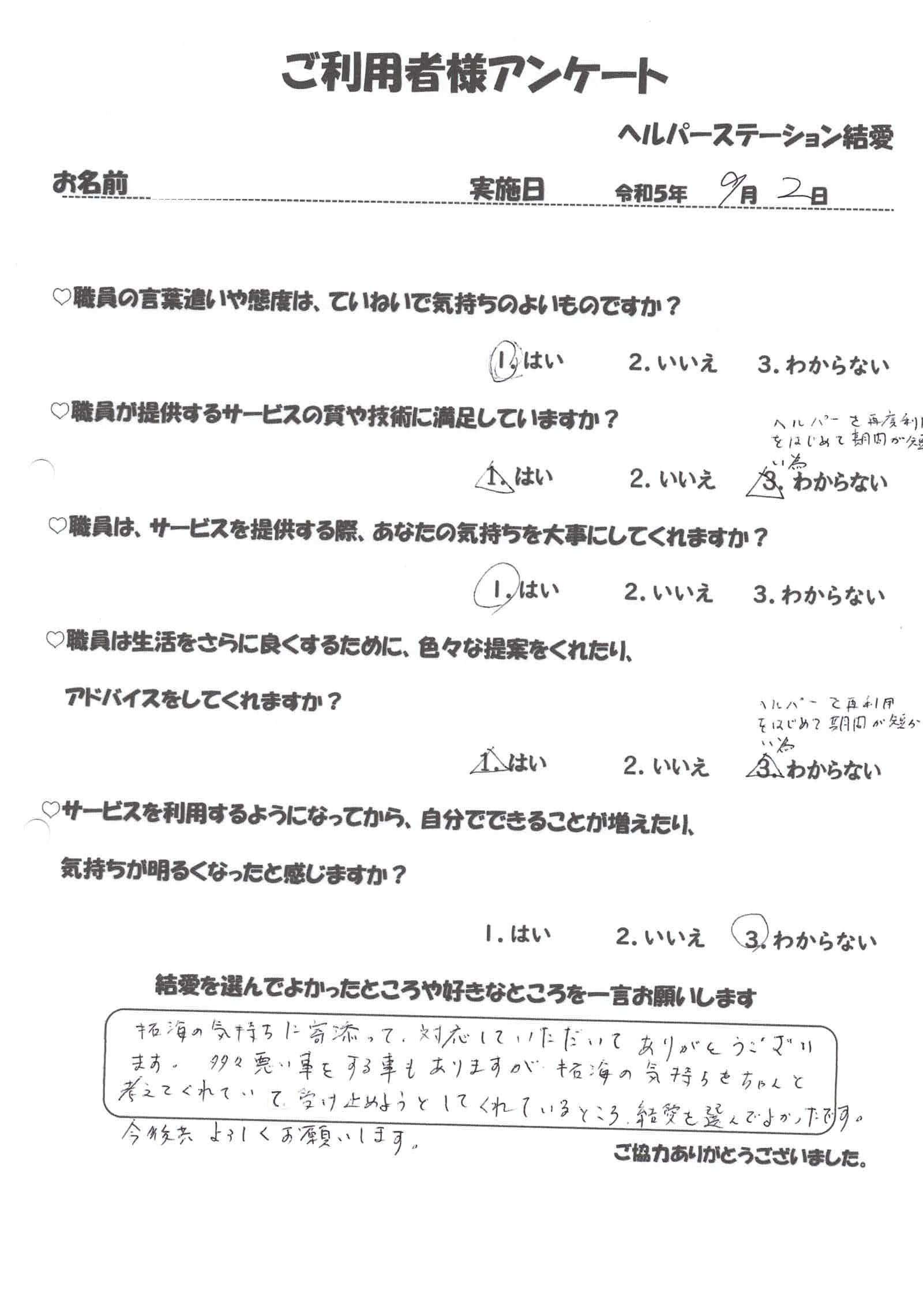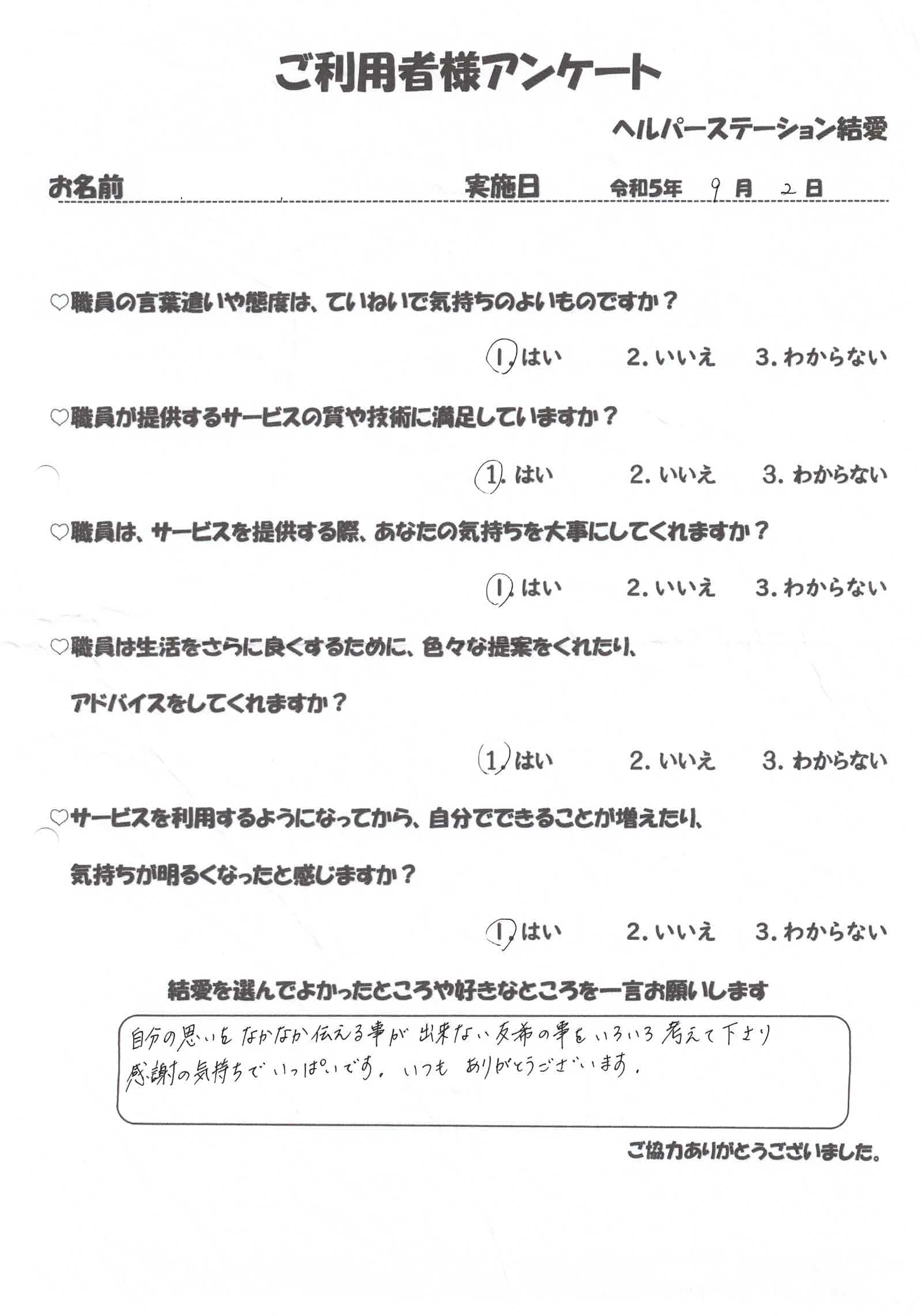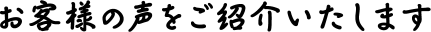 サービスを受けられたお客様の声です。よりよいサービスを提供するために、様々なご意見を頂戴し、日々改善に努めております。