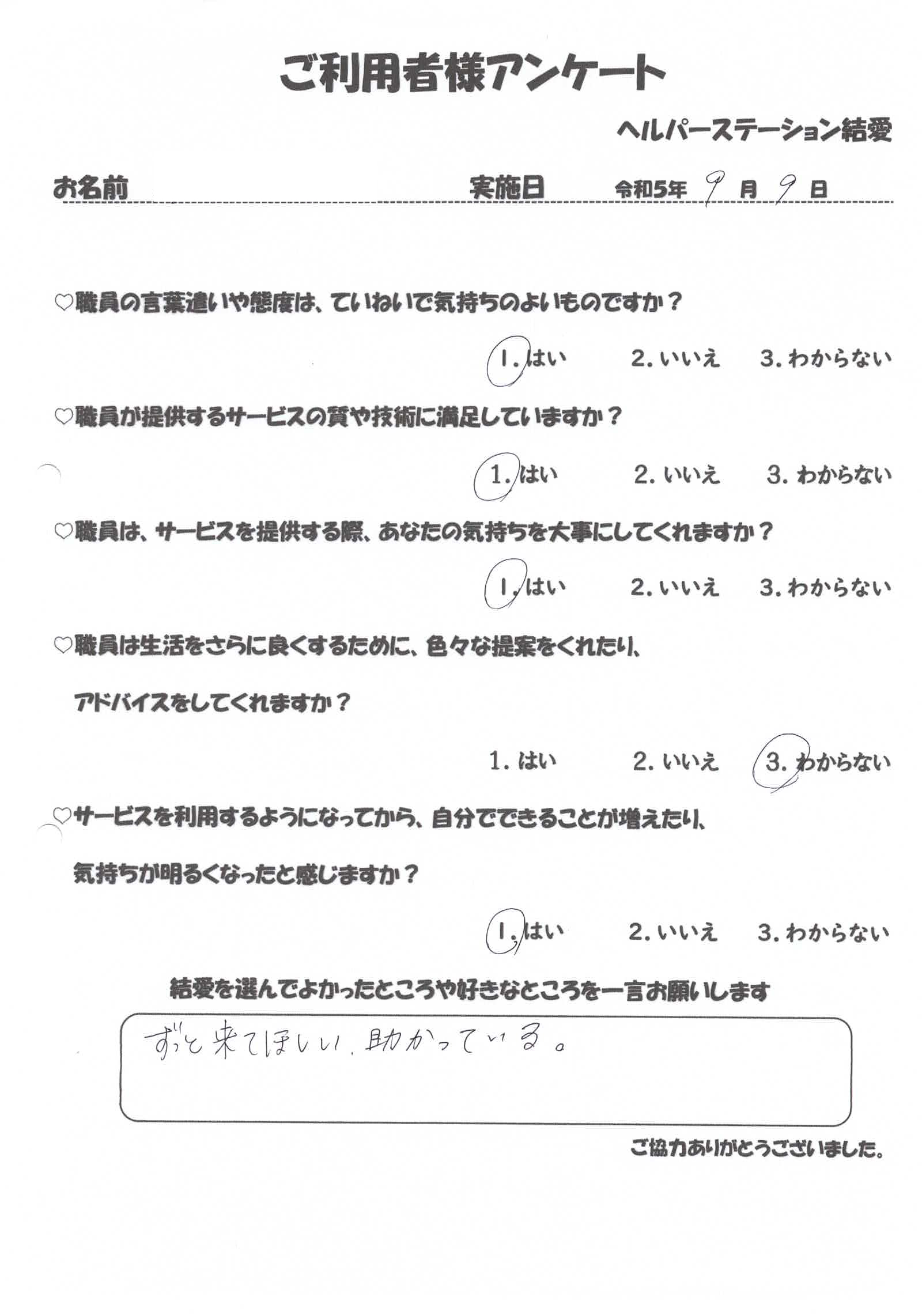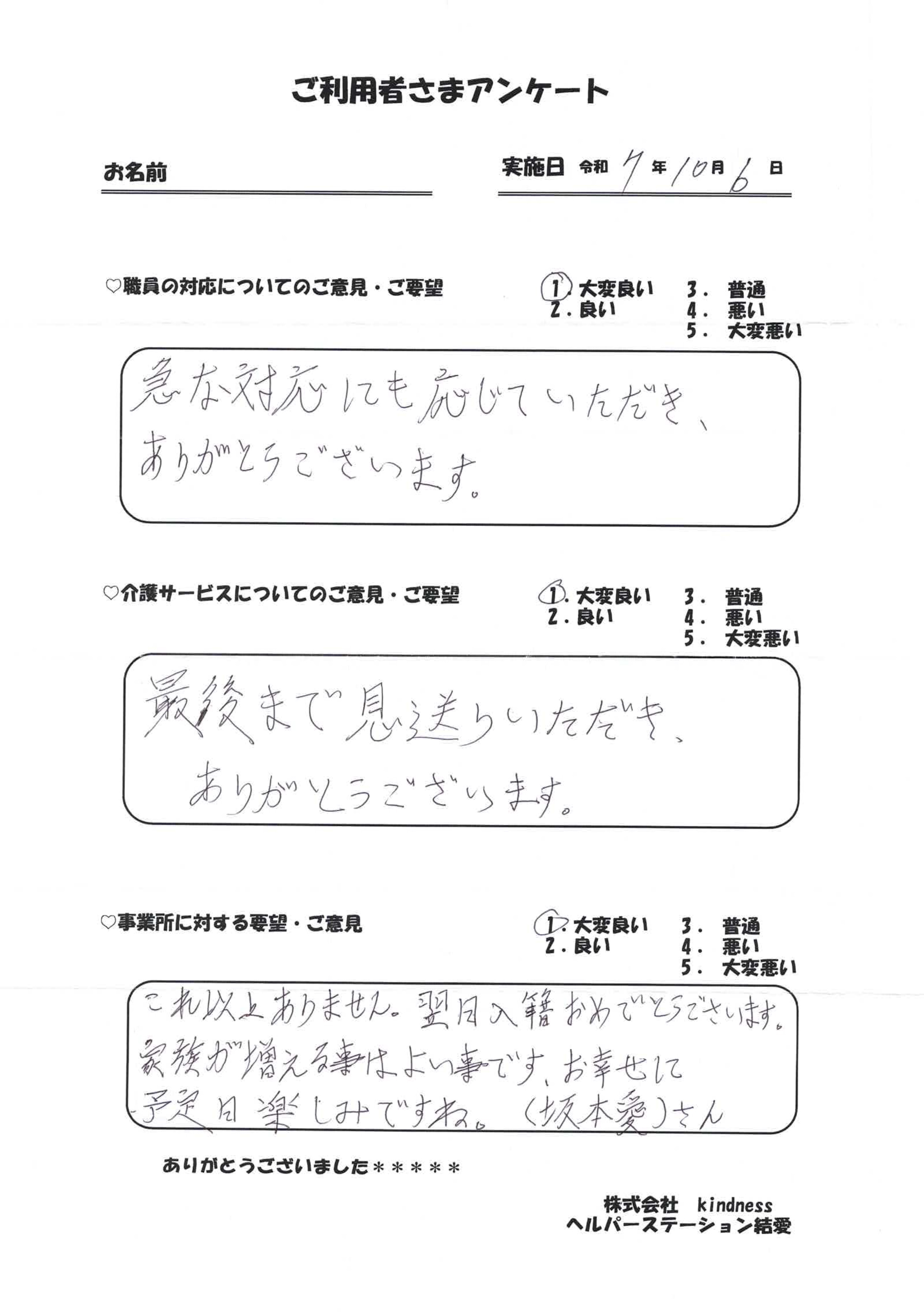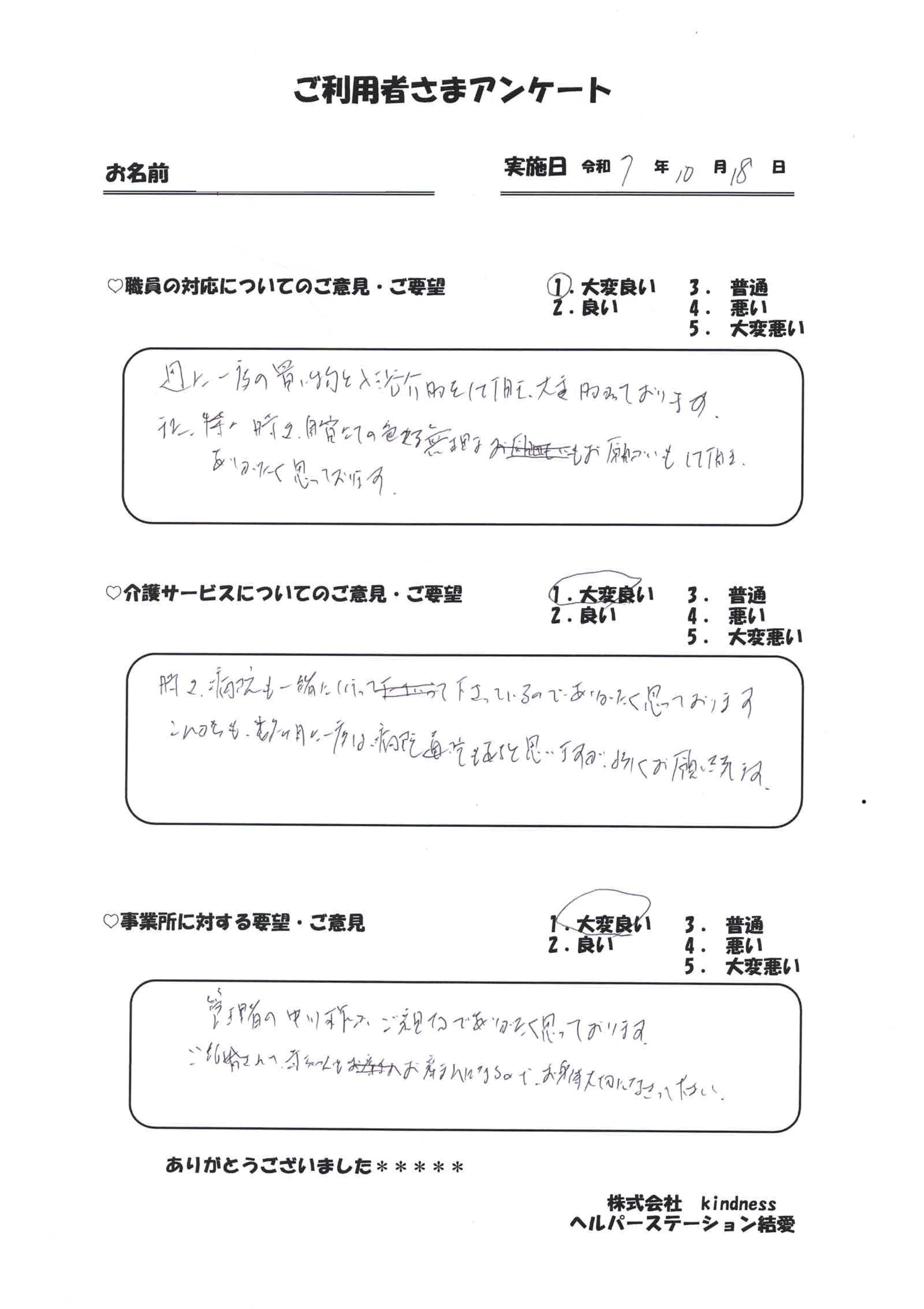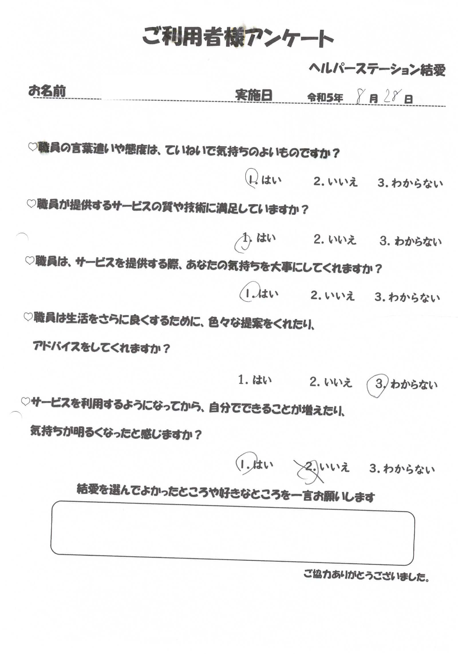 サービスを受けられたお客様の声です。よりよいサービスを提供するために、様々なご意見を頂戴し、日々改善に努めております。