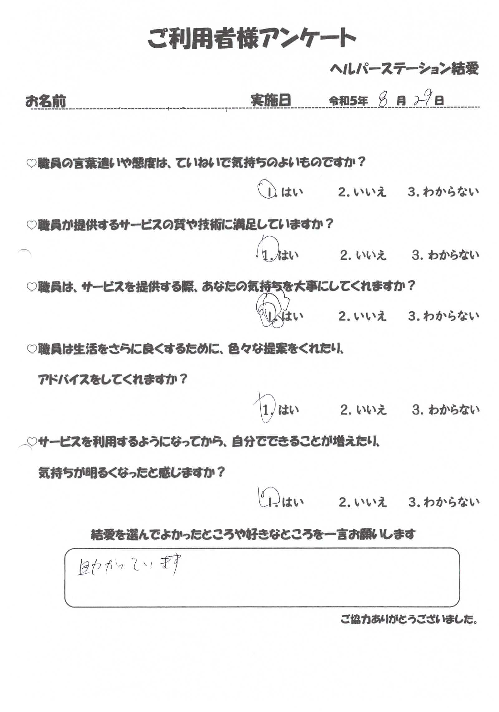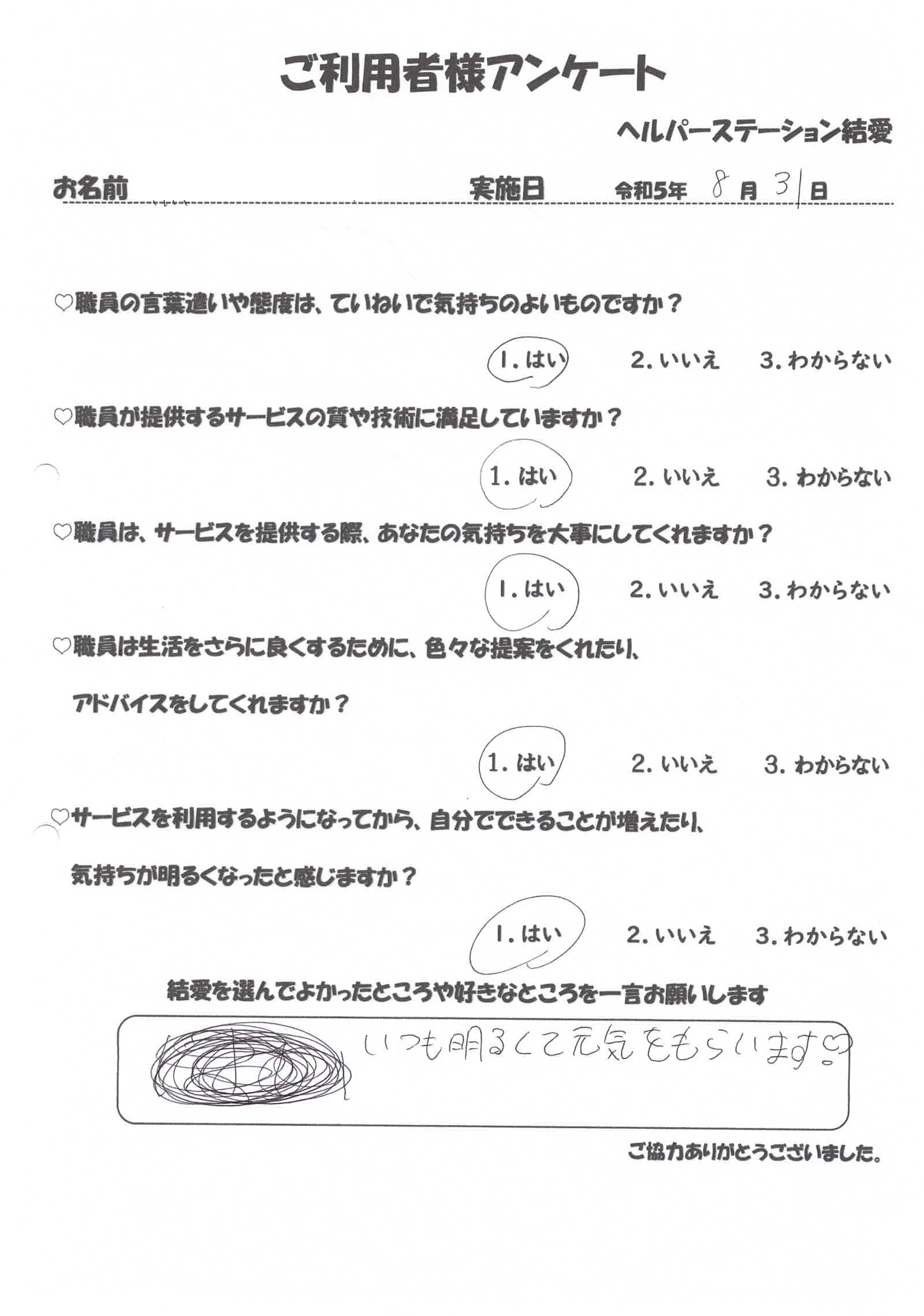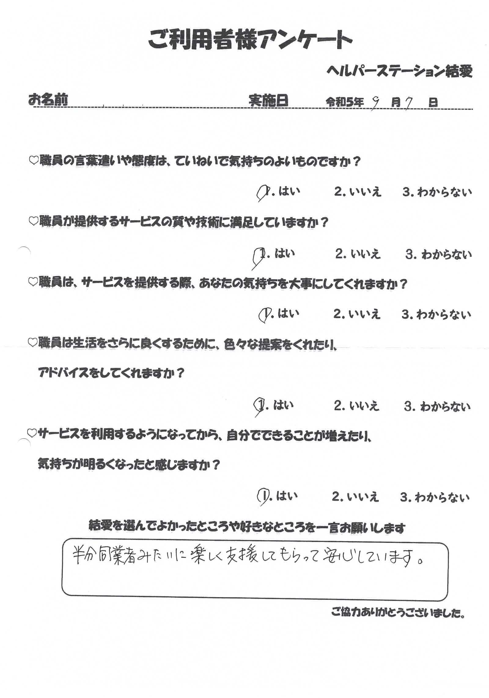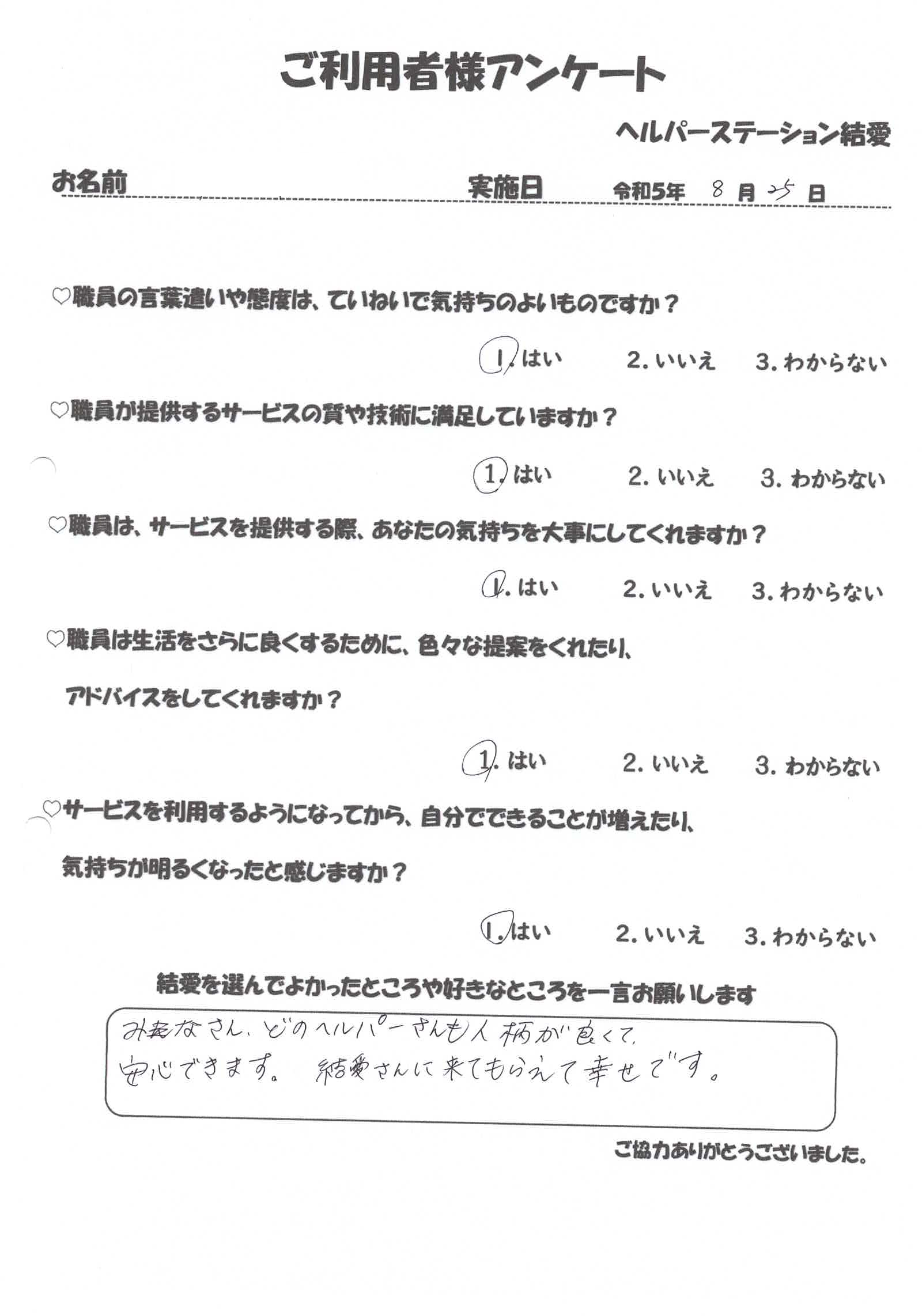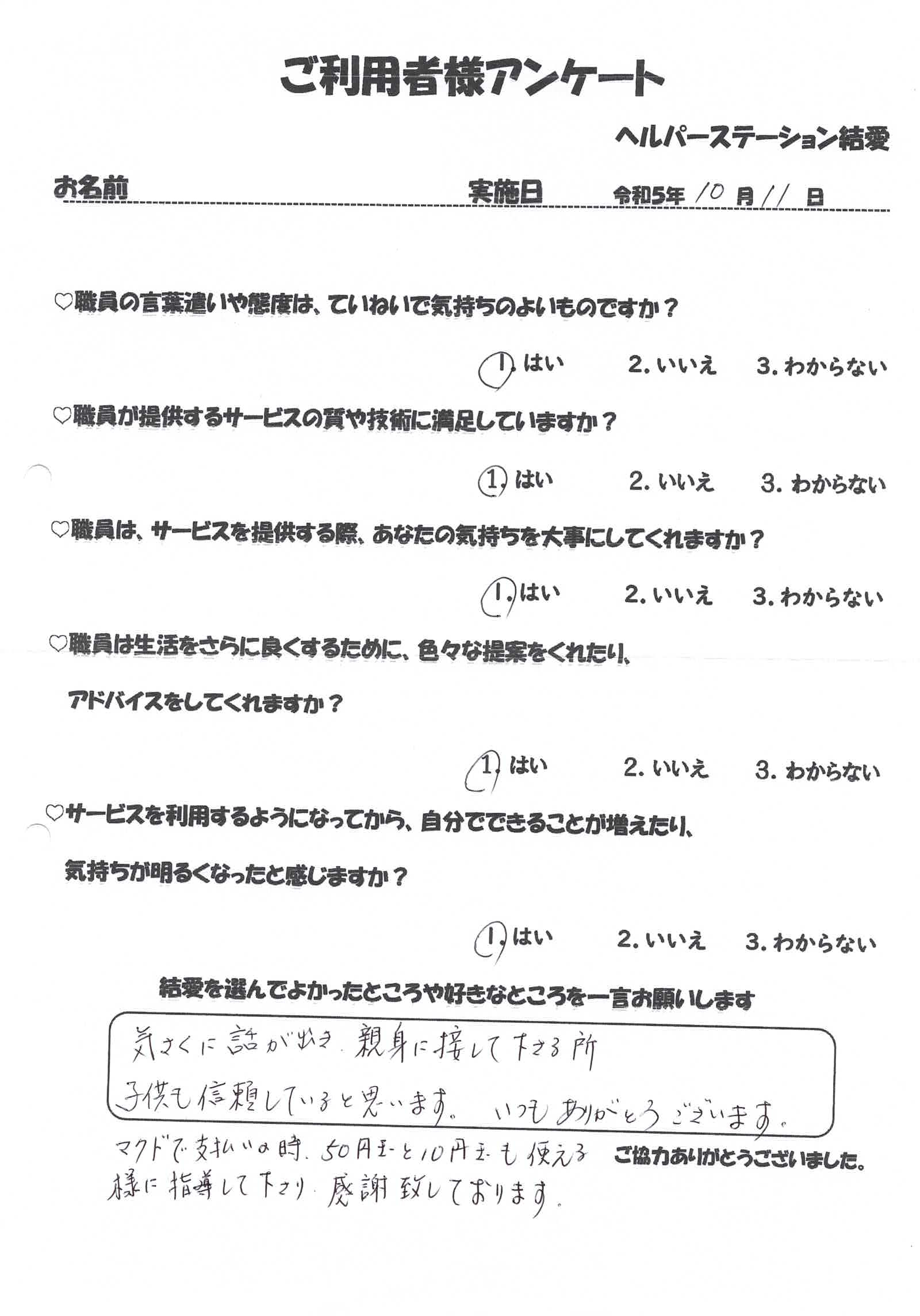 サービスを受けられたお客様の声です。よりよいサービスを提供するために、様々なご意見を頂戴し、日々改善に努めております。