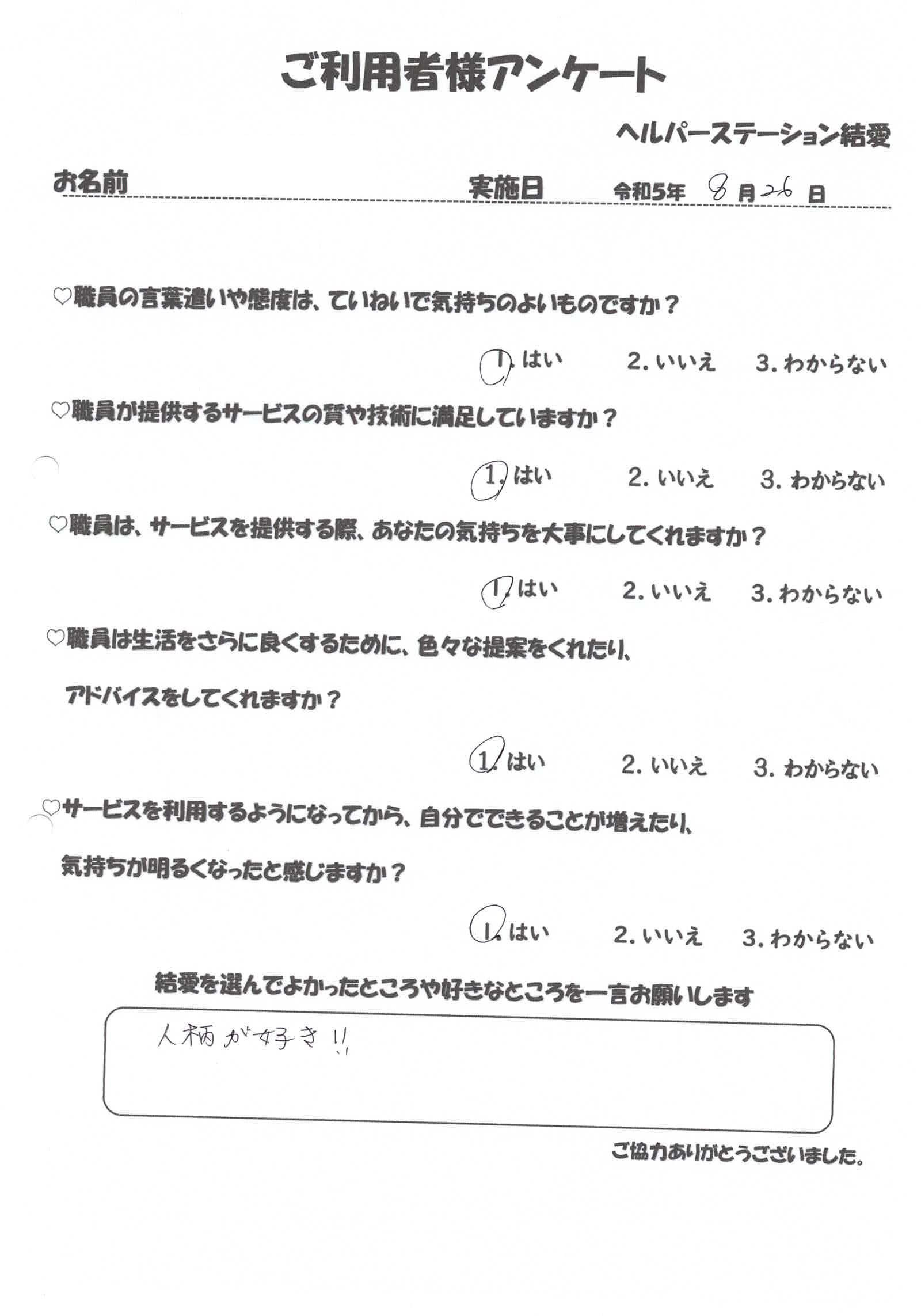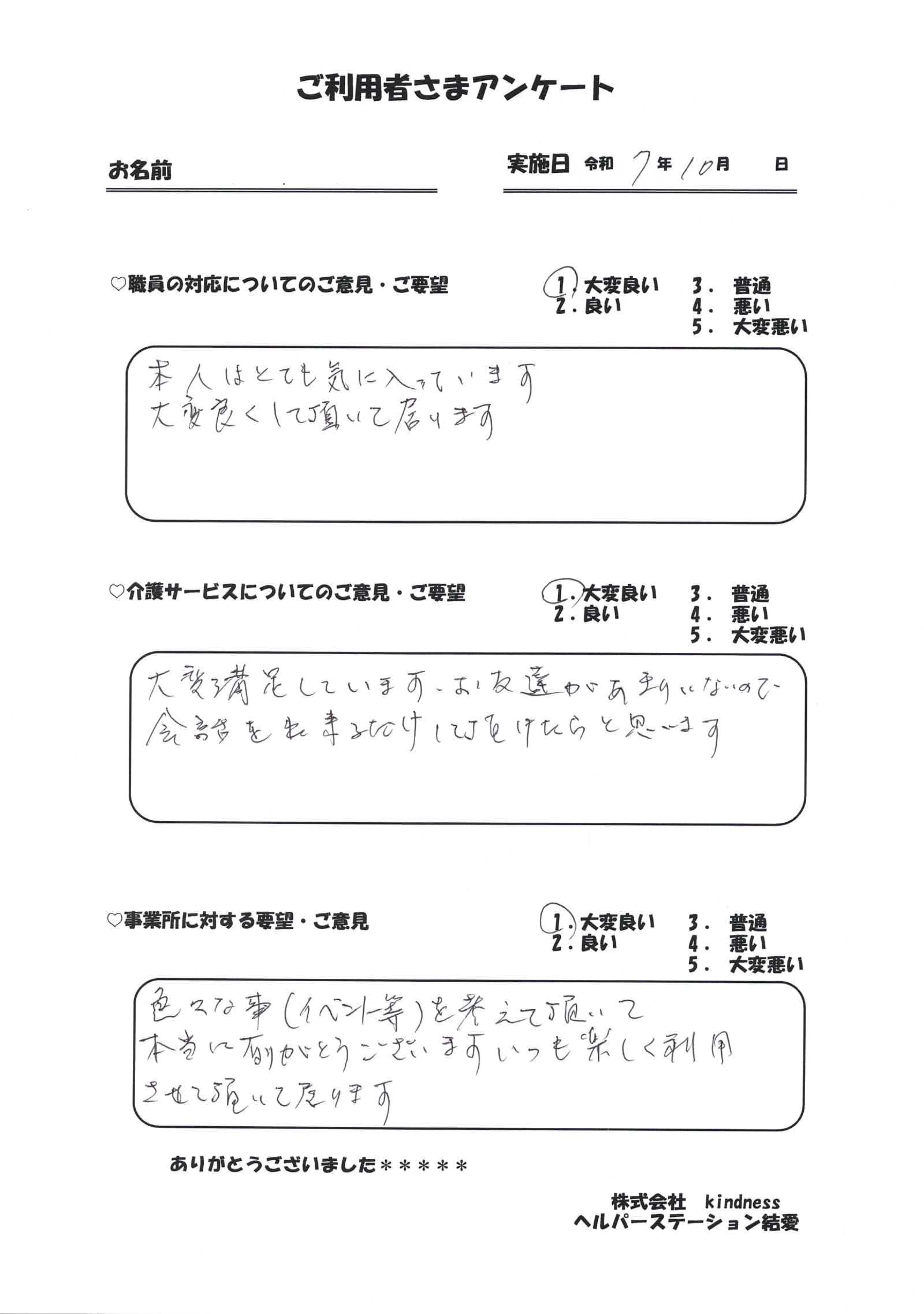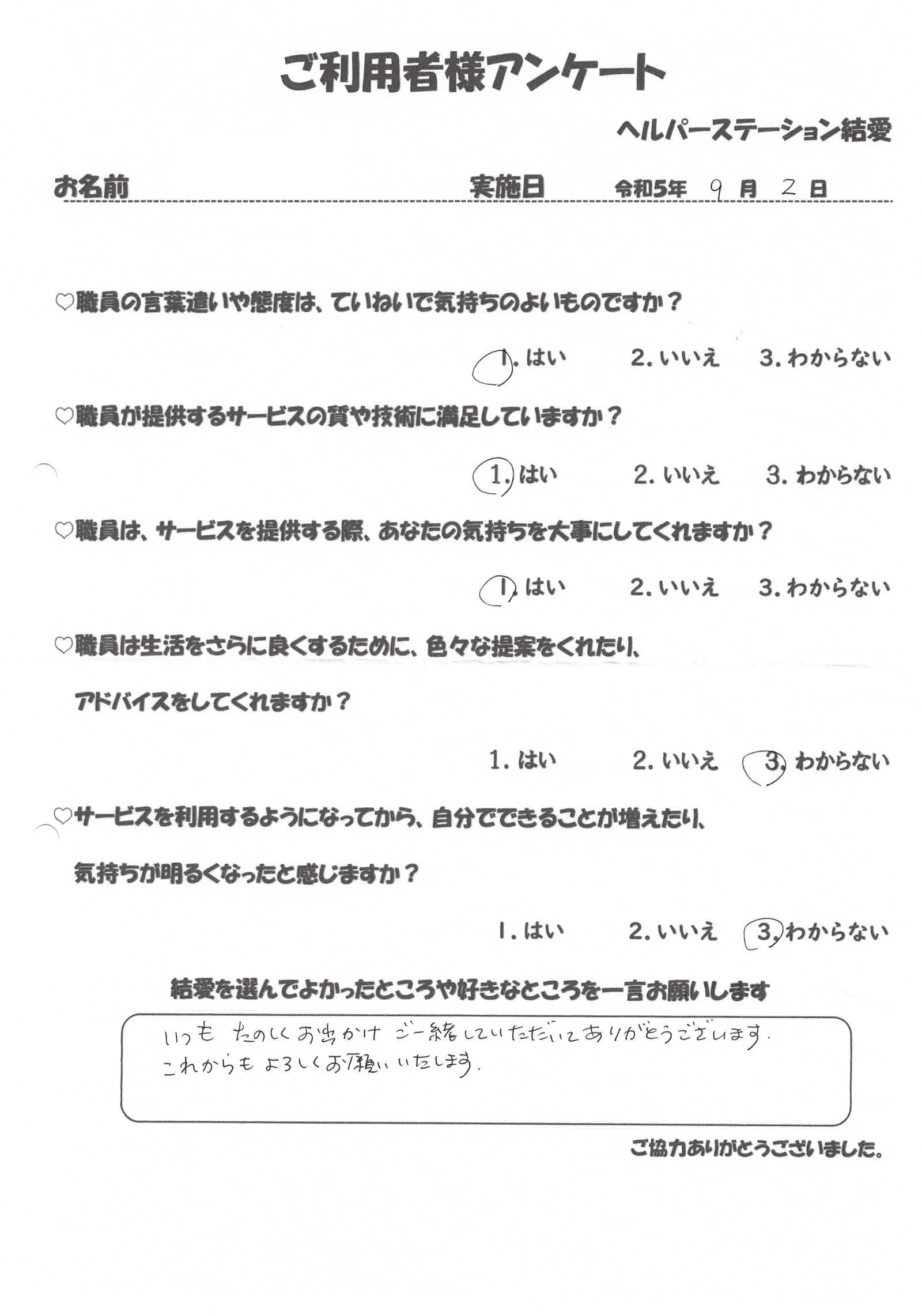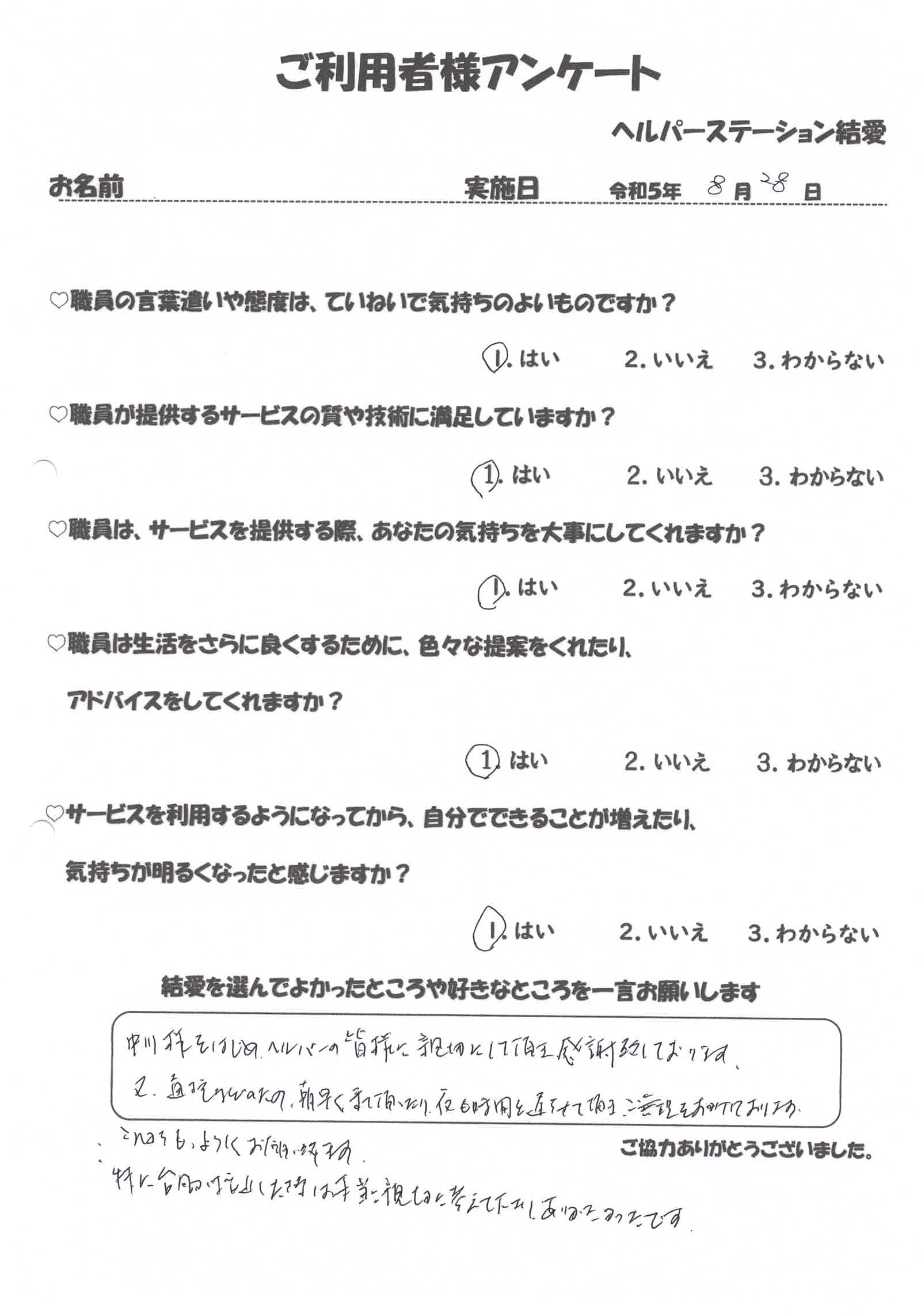 サービスを受けられたお客様の声です。よりよいサービスを提供するために、様々なご意見を頂戴し、日々改善に努めております。