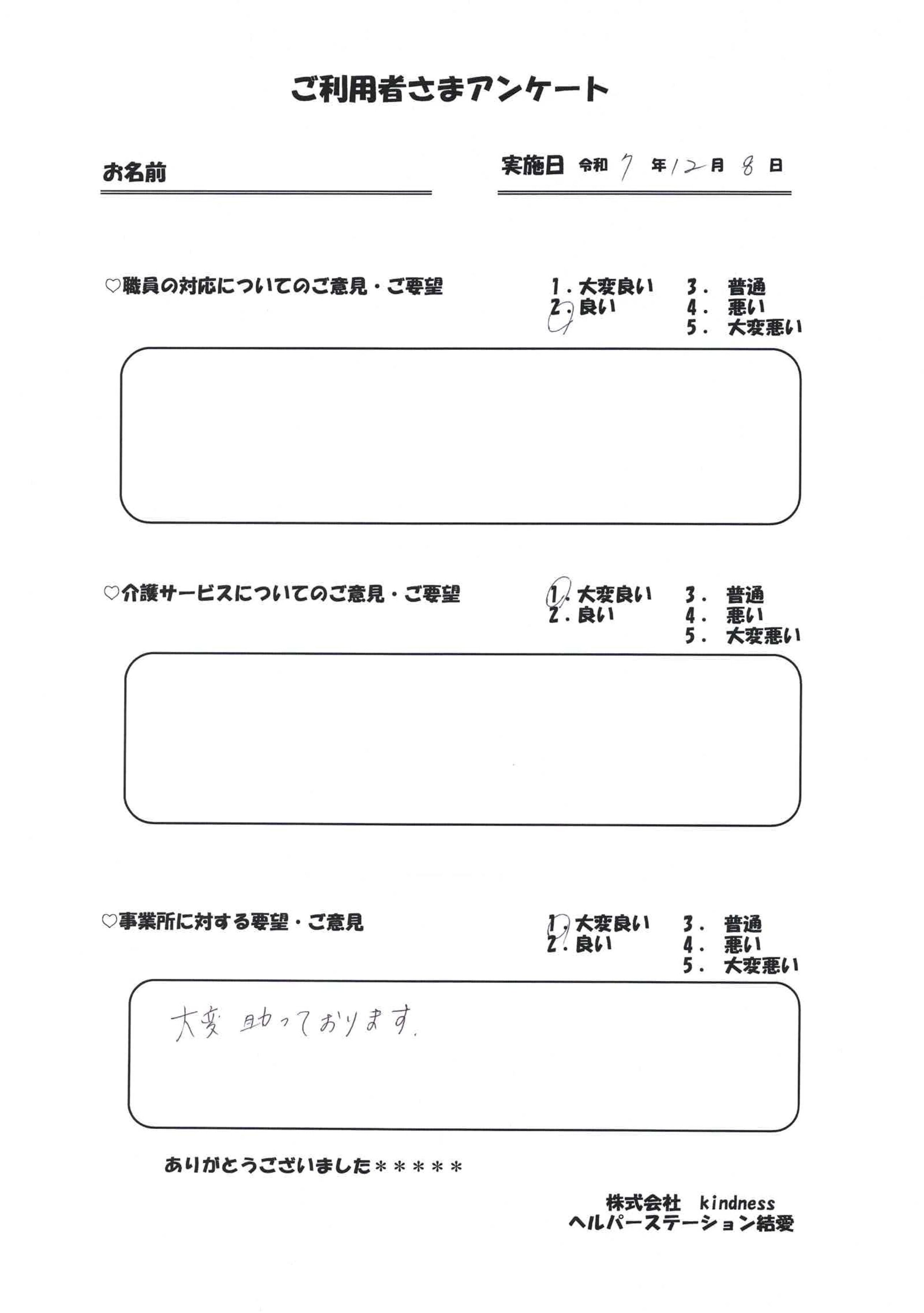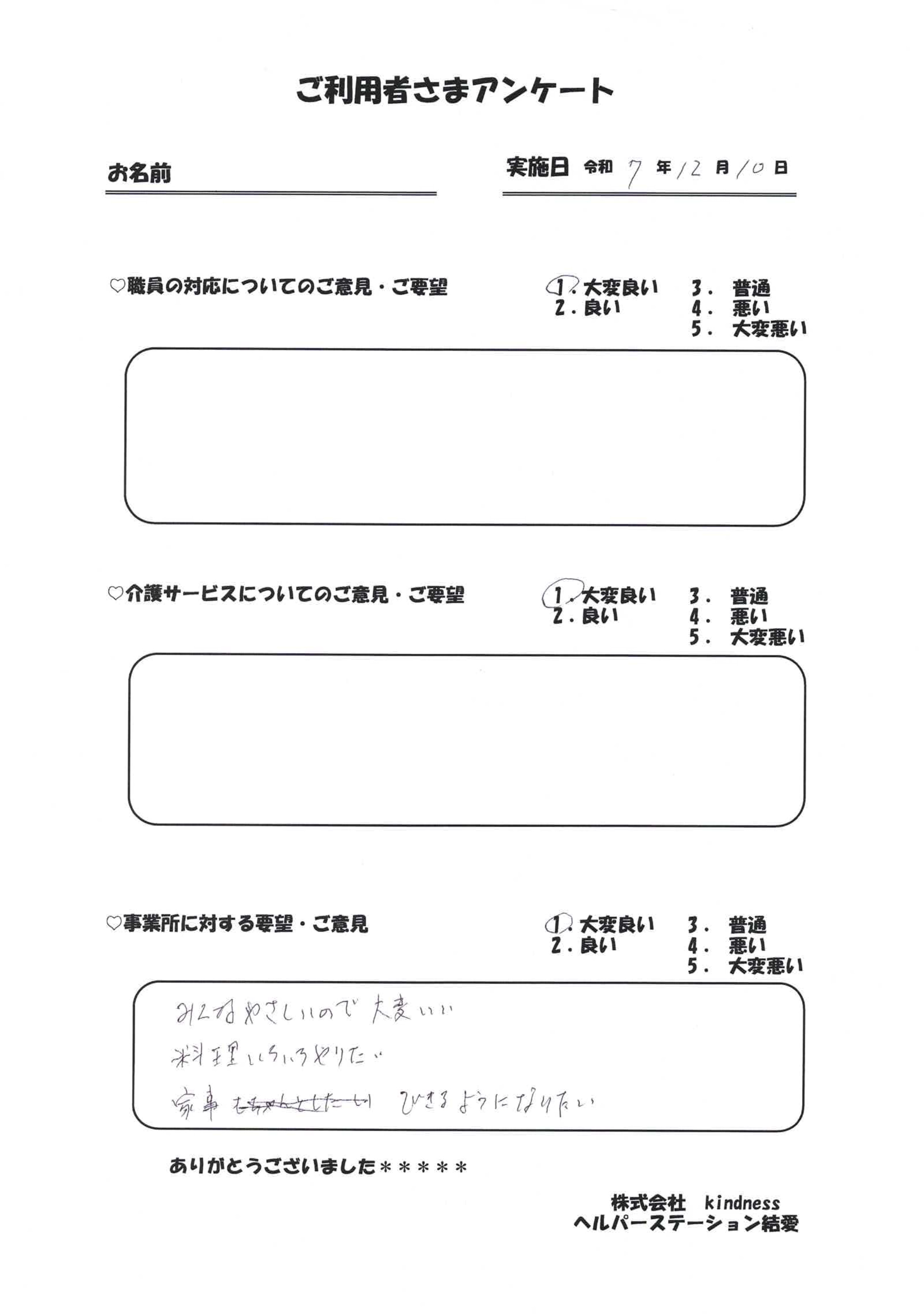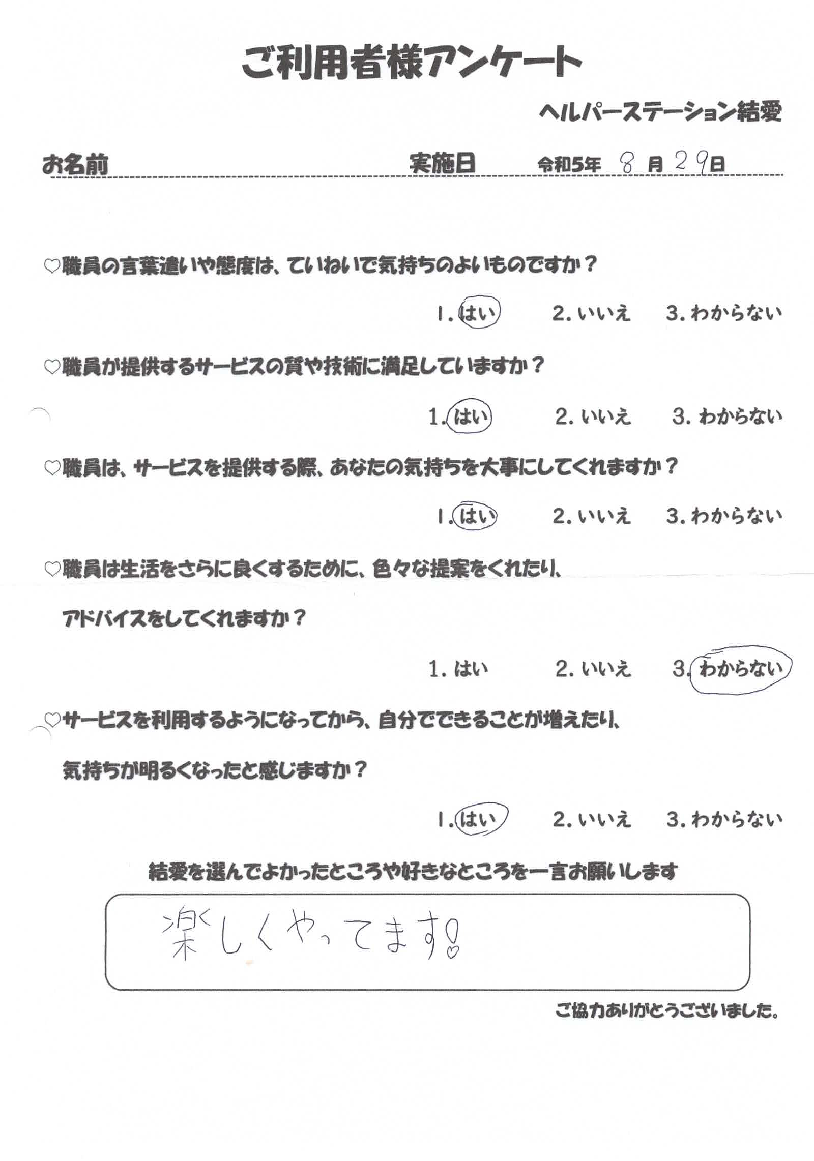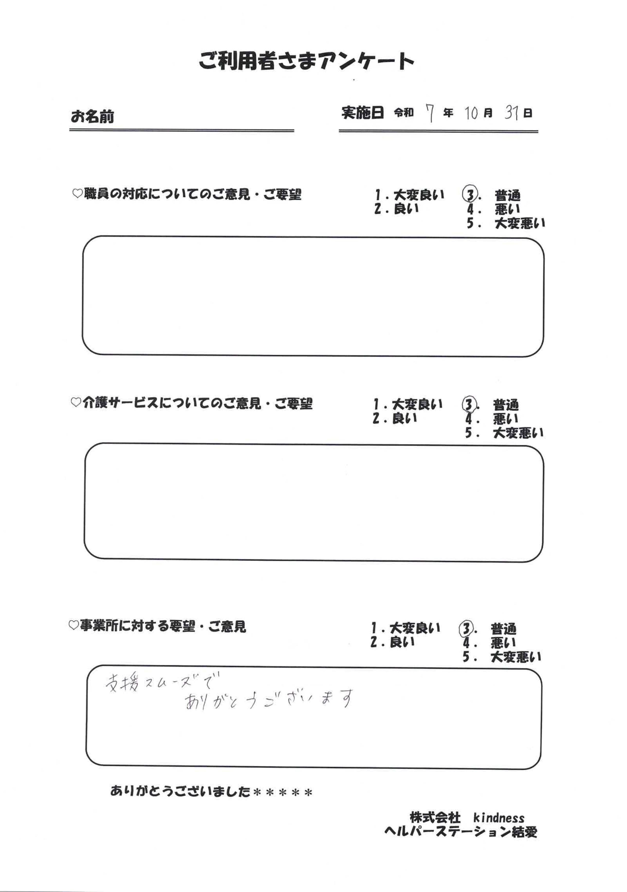 サービスを受けられたお客様の声です。よりよいサービスを提供するために、様々なご意見を頂戴し、日々改善に努めております。